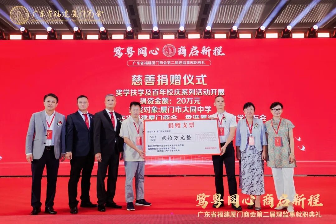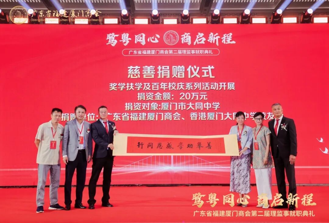 为庆祝厦门大同中学百年校庆,商会联合香港厦门大同中学校友会各捐10万元,共计20万元用于该校奖学扶学及校庆系列活动,传承教育薪火。