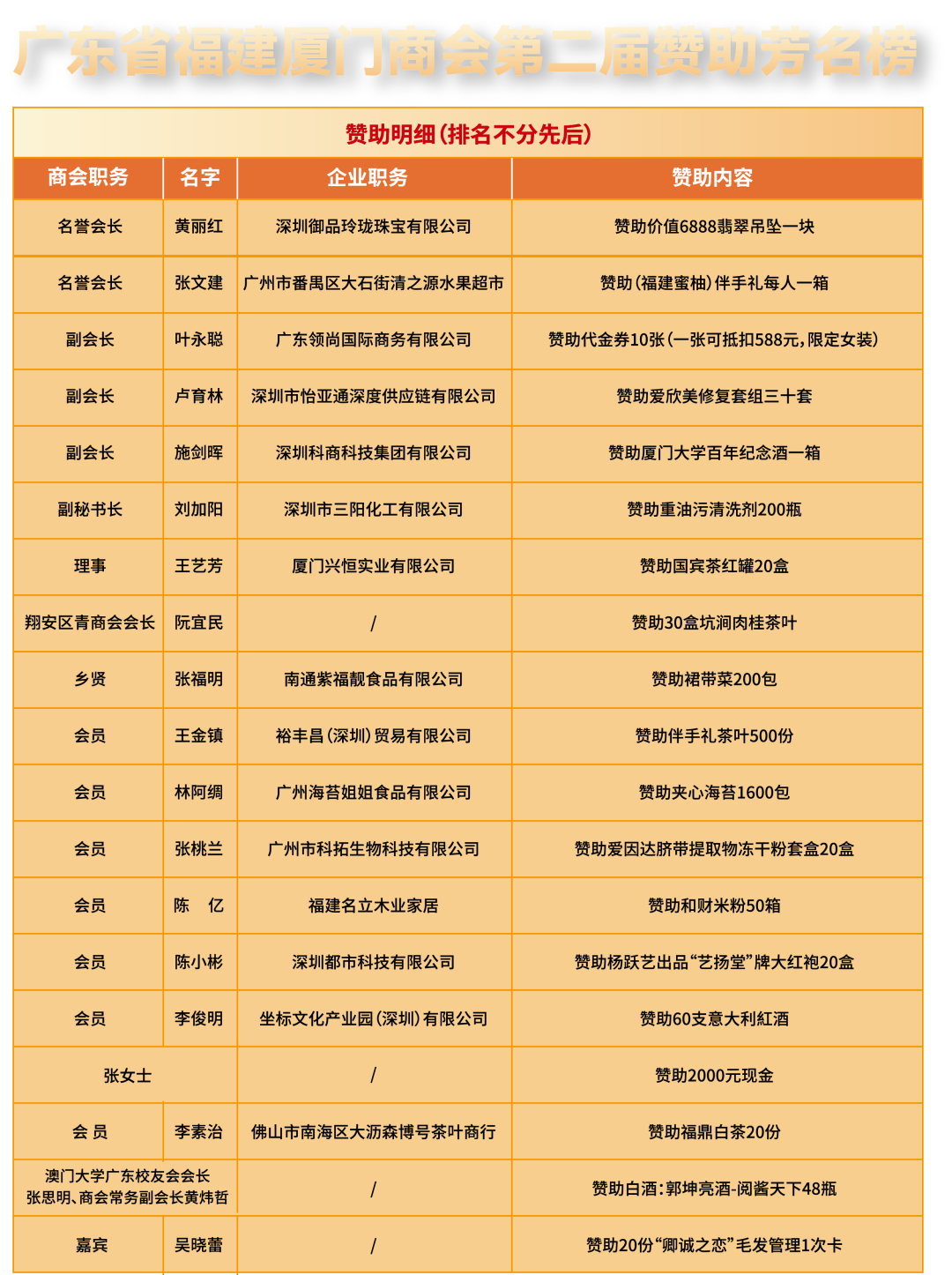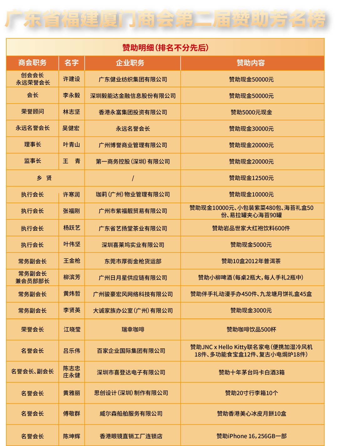 此次庆典,我会收到了香港福建同乡会、香港珠海商會、香港仁济医院、广东省福建商会、泰国闽商商会等多家海内外企业、社会组织的贺信、贺礼与花篮,祝福满满,情谊深重。